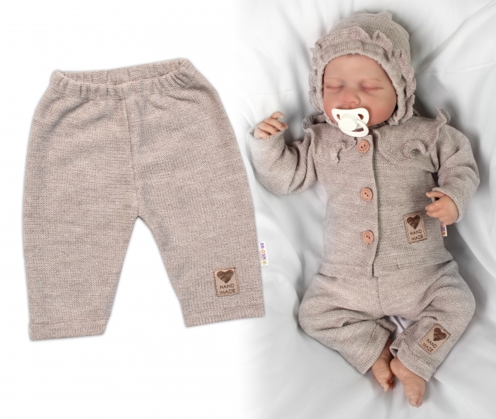 Pletené kalhoty Hand Made Girl, Baby Nellys, béžové, vel. 68; 68 (3-6m)