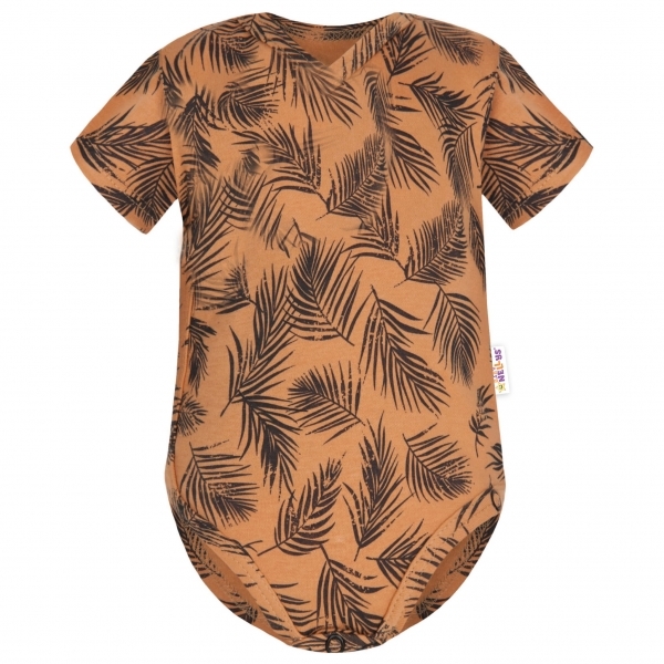 Baby Nellys Bavlněné body krátký rukáv, Palmy - medové; 74 (6-9m)