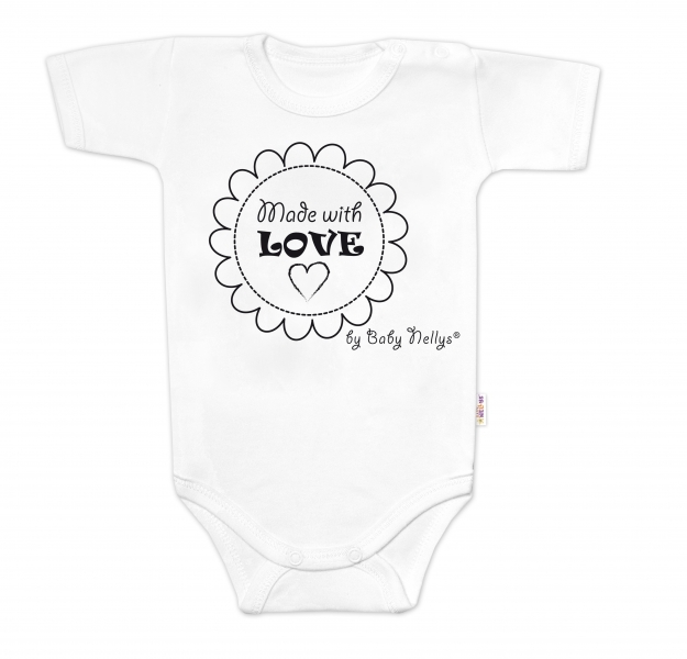 Body krátký rukáv Made with love, Baby Nellys, bílé, vel. 68; 68 (3-6m)