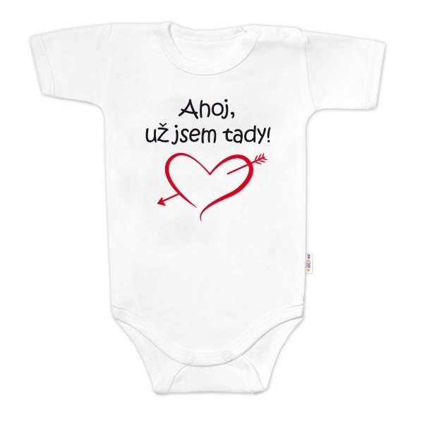 Body krátký rukáv Ahoj už jsem tady!, Baby Nellys, bílé, vel. 74; 74 (6-9m)