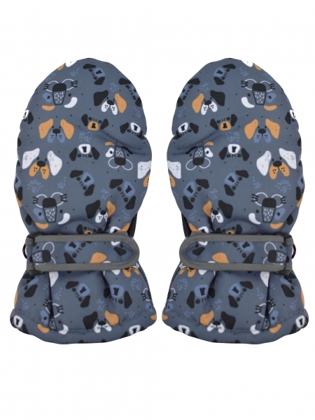 Dětské zimní, nepromokavé palčáky, Pejsek, šedé, vel. 110/116, 16 cm; 110-116 (4-6r)