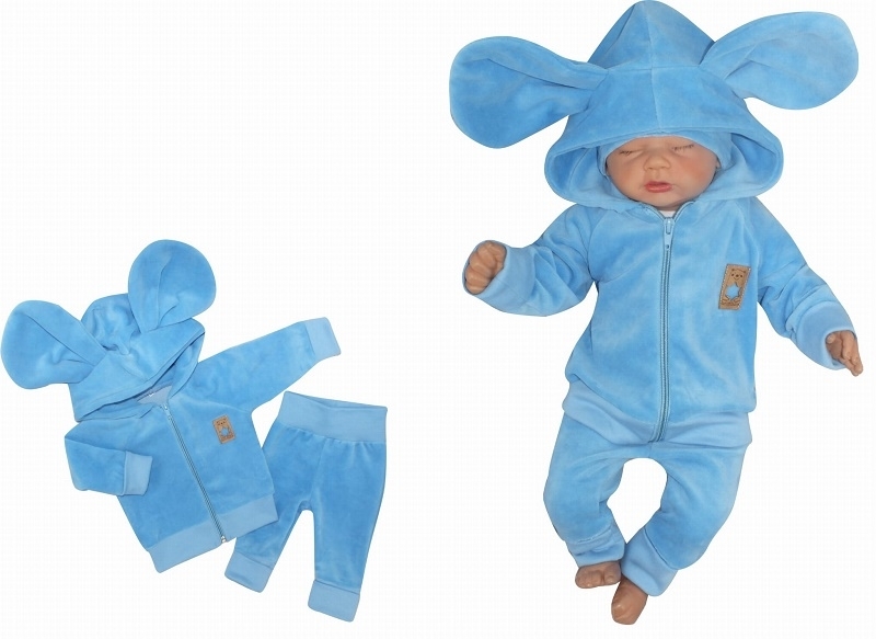 Z&Z Velurová, semišková tepláková souprava s oušky MYŠKA - sv. modrá; 56 (1-2m)