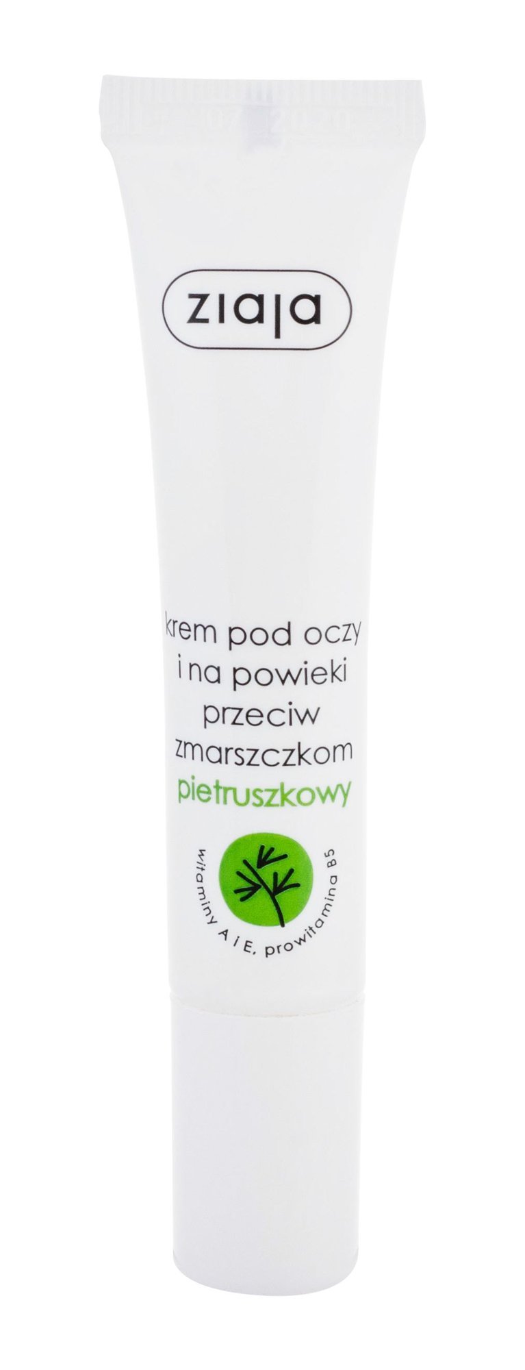 Krem pod oczy przeciwzmarszczkowy **Ziaja Anti-Wrinkle Eye Cream Parsley.** Krem pod oczy z ekstraktem z pietruszki, która jest bogata w witaminę A, E i prowitaminę B5, usuwa widoczne zmarszczki i linie w okolicach oczu. Poprawia elastyczność skóry. Pomaga uzupełniać nawilżenie. Rozświetla okolice oczu. Usuwa cienie pod oczami. Łagodzi podrażnioną, wrażliwą okolicę oczu. Skutecznie walczy z wolnymi rodnikami, które prowadzą do przedwczesnego starzenia się skóry. **Działanie:** · usuwanie linii i zmarszczek · rozświetlenie okolic oczu · redukcja cieni pod oczami · nawilżenie skóry · łagodzenie podrażnionej skóry **Stosowanie:** Delikatnie wmasować w oczyszczone okolice oczu.