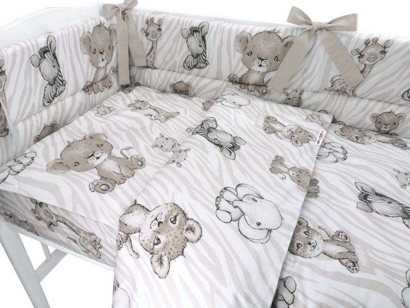 BABY NELLYS 3-dílná sada Mantinel s povlečením, ZOO - béžová, 135x100