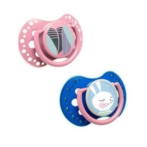 Silikonové dudlíky (šidítka). LOVIKolekce: FOLLOW THE RABBIT.Unikátní konstrukce zabraňuje reflexu kousání do šidítka, umožňuje volné dýchání nosem a přirozené polykání slin a navíc podporuje i zdravý rozvoj řeči a skusu.Sada obsahuje:- 2 ks dudlíků (šidítko) Lovi.- kryt na dudlík (šidítko) 2... przeczytaj całość