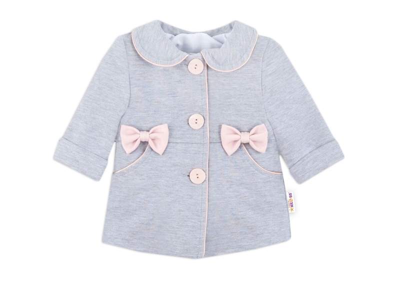 Baby Nellys Dětský bavlněný kabátek s mašličkami, šedý, vel. 86; 86 (12-18m)