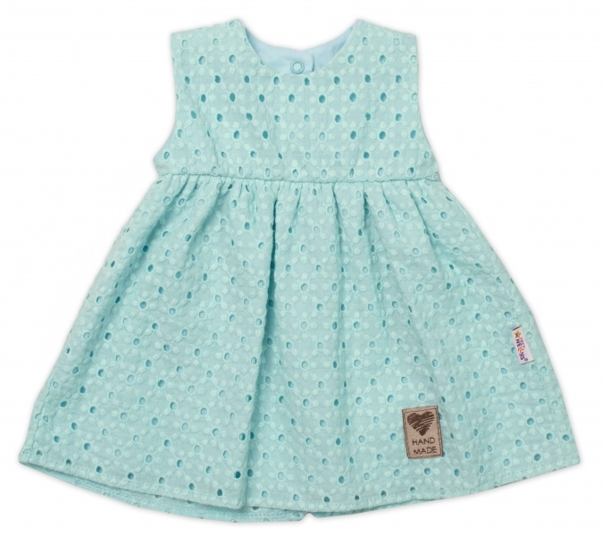 Baby Nellys Lehké Handmade šatičky Madeira, mátové; 62 (2-3m)