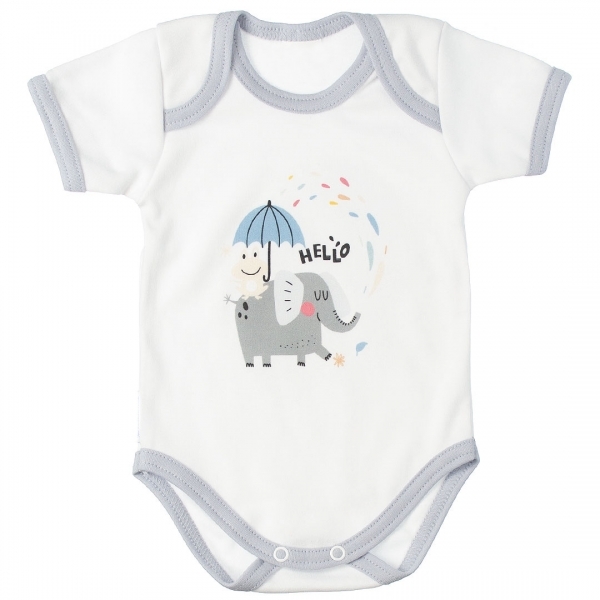 MBaby Bavlněné body s krátkým rukávem, Slůně Hello, bílo/šedé, vel. 68
