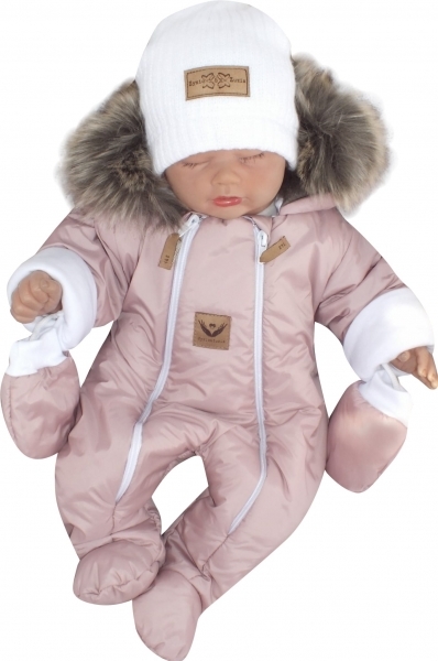 Zateplená zimní kombinéza s kapucí + rukavičky. Kapuce má okouzlující kožešinku. Čepice a šály zobrazené na fotografiích nejsou součástí. Materiál:Vnější strana: 100% polyester.Vnitřní/podšívka: 100% bavlna. Umělá kožešina na kapuci není odnímatelná.jakost.Detailní rozměry:Vel. 56 - délka 40 cm,...