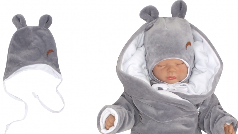 Z&Z Velurová čepice na zavazování s oušky, šedá, vel. 80/86; 80/86 (12-18m)