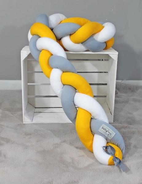 Mantinel do postýlky Baby Nellys ®.Pletený cop je moderní alternativou tradičního nebo polštářového mantinelu. Každý pramen je vyroben z nejkvalitnějšího strečového a měkkého bavlněného materiálu a antialergické výplně. Jsou ručně pletené.Jsou víceúčelové: - můžete je použít klasickým způsobem...
