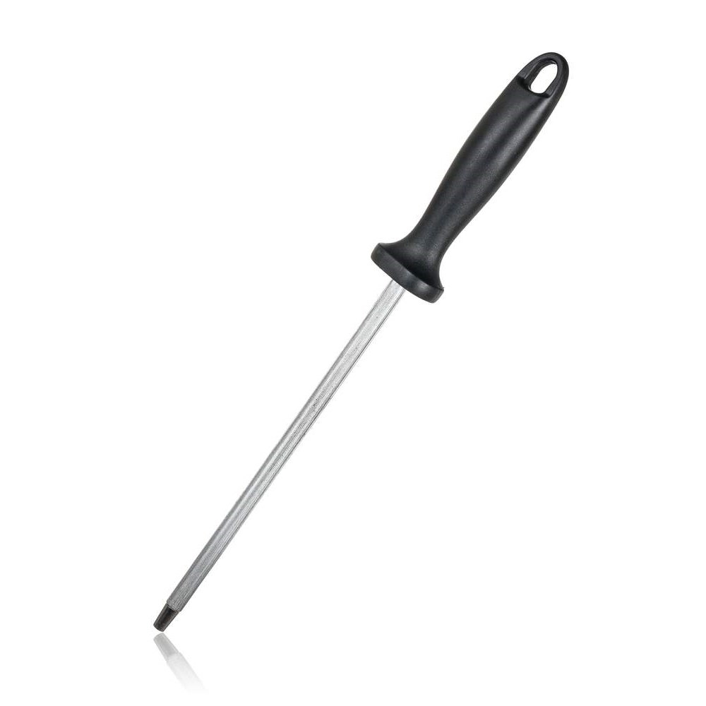 Ocílka BANQUET o celkové délce 33 cm a délce čepele 20.5 cm je vyrobena z poniklované uhlíkové oceli. Tvar ocílky zajišťuje maximální účinek při použití. Ergonomické držadlo je vyrobeno z odolného plastu (PP) v černé barvě. Není vhodné do myčky nádobí. EAN 8591022385906 przeczytaj całość