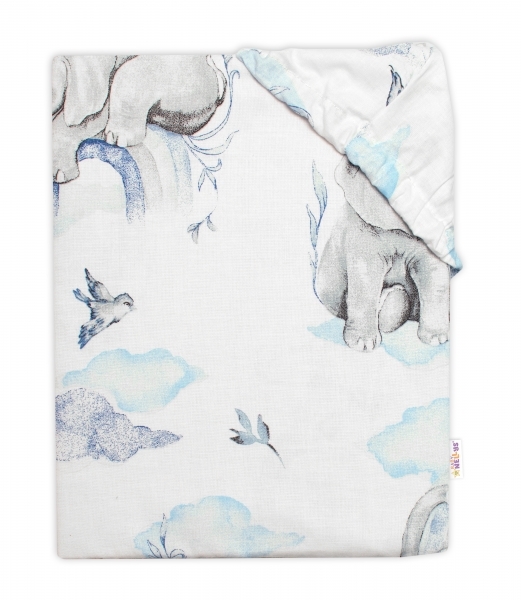 Dětské bavlněné prostěradlo do postýlky, Slon a duha, modrá/bílá, 140 x 70 cm; 140x70