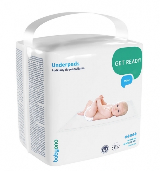 Dětské přebalovací podložky Baby Ono jsou vhodné na doma i cestování. Velmi praktická věc. Balení obsahuje 20ks přebalovacích podložek.Rozměr: 60x90cm.Spodní nepropustná vrstva proti prosáknutí.Prostřední vrstva, absorbent, zajišťuje maximální vstřebání tekutiny a poskytnutí sucha po celou dobu...