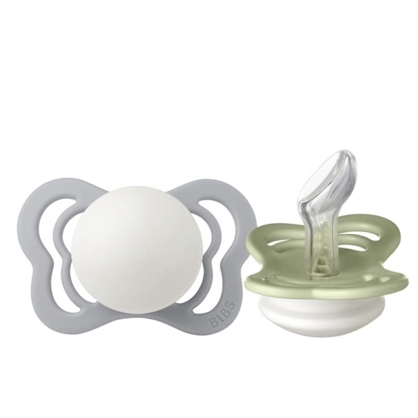 Ortodontické silikonové dudlíky BIBS Night, 2 ks - 0 m+, šedá/olivová