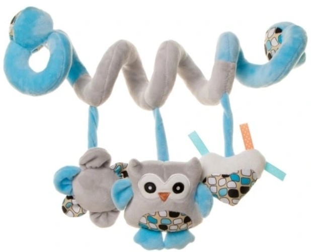 Pluszowa spirála jest wykonana z różnych materiałów, które stymulują dotyk dziecka. Każda z zawieszonych zabawek jest dodatkowo wyposażona w funkcję grzechotki lub piszczałki, aby zapewnić inspirującą zabawę najmłodszym. Kształt spirali umożliwia jej przymocowanie do wózka, łóżeczka lub fotelika samochodowego.