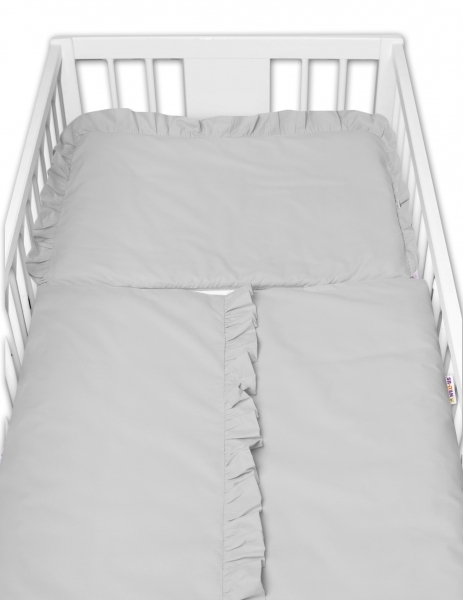 2-dílné bavlněné povlečení s volánkem SOFT, Baby Nellys, šedé, 135x100 cm; 135x100