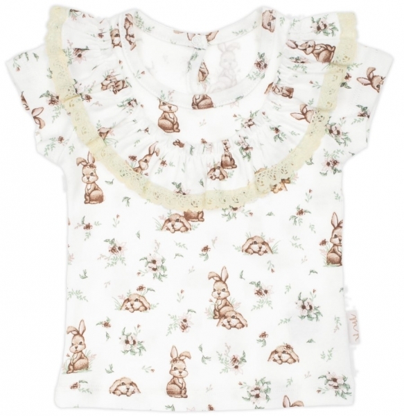 Tričko bavlna, krátký rukáv s volánky, Nicol, Bunny - krémové