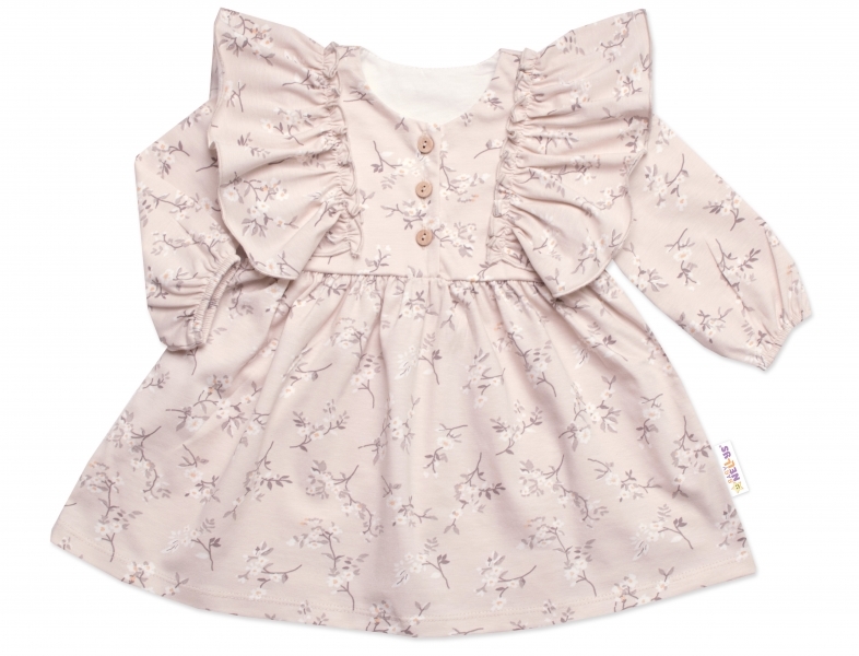 Dívčí šaty dlouhý rukáv s volánky Sára, bavlna, Mrofi, cappucino, vel. 86; 86 (12-18m)