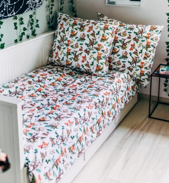 Baby Nellys 2-dílné bavlněné povlečení - Baby Friends, bílá/béžová, 140x200/70x90cm; 140x200/70x90cm