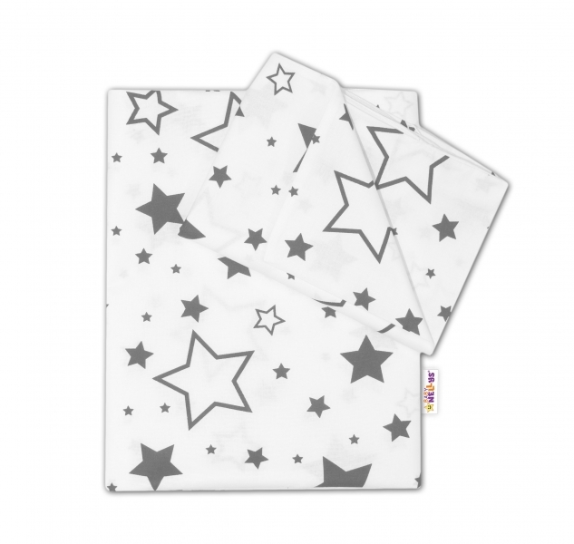 Baby Nellys 2-dílné bavlněné povlečení - Šedé hvězdy a hvězdičky - bílý; 120x90
