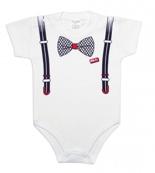 Body kr. rukáv, bavlna, zapínání u krku Mrofi, Elegant - bílé, vel. 74