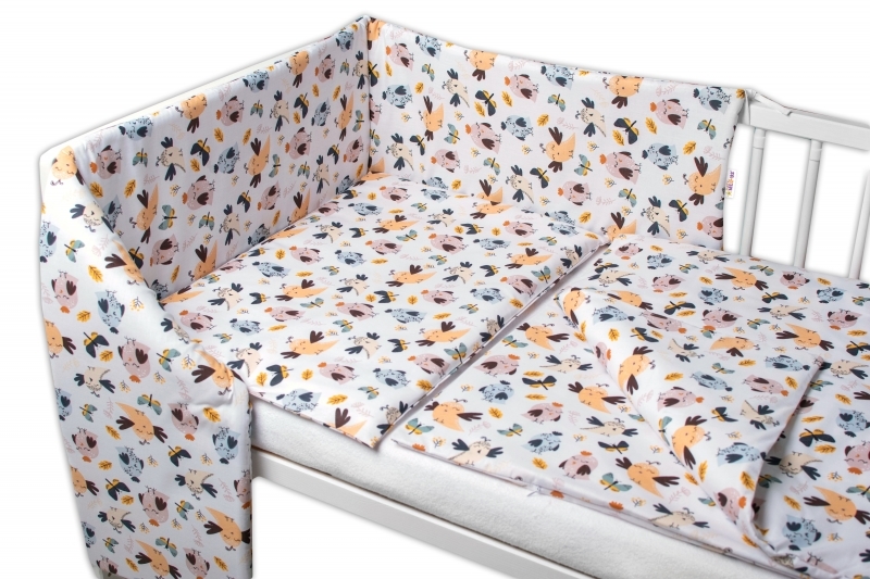 Baby Nellys 3-dílná sada, mantinel s povlečením Ptáčci a Vážky - bílá, 120x90 cm; 120x90
