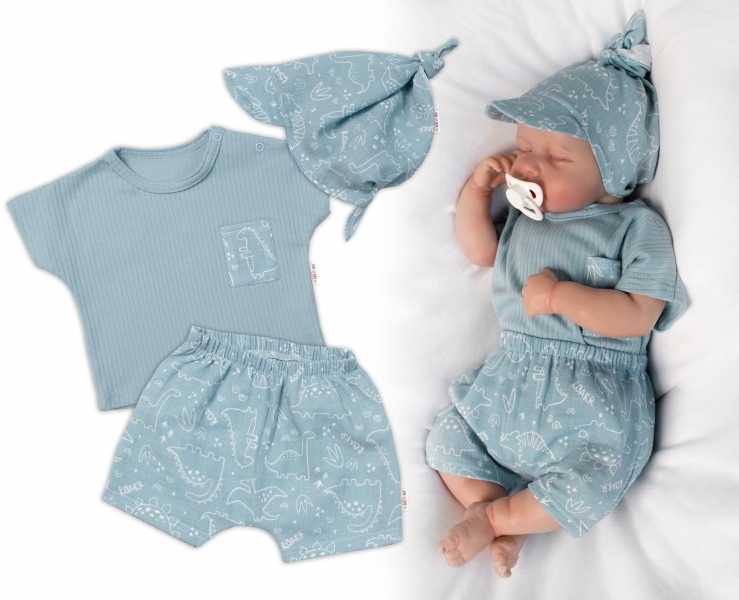 Triko kr. rukáv, kraťasky + šátek, mušelín, Dino, Baby Nellys, mátové, vel. 86; 86 (12-18m)
