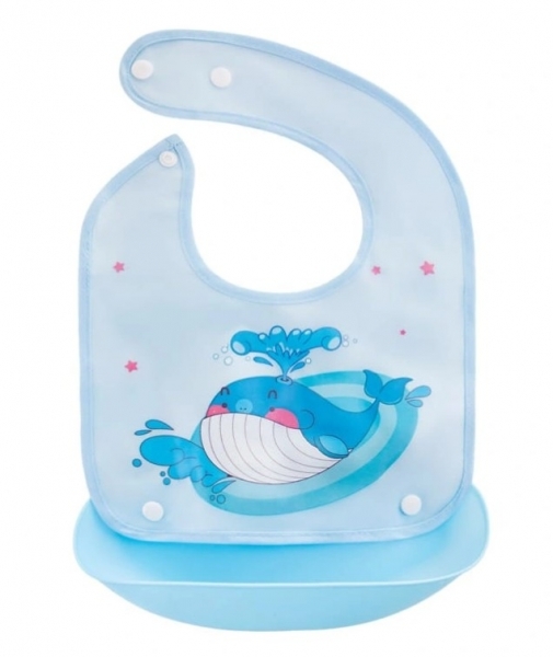 Bardzo praktyczny śliniaczek z odpinaną kieszonką - idealny dla maluchów, które uczą się samodzielnie jeść.