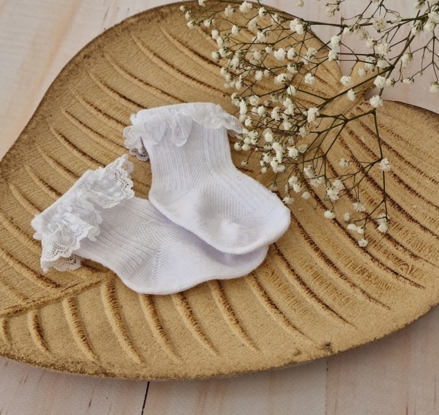 Ponožky jsou bez tlaku, což znamená, že nemají lemy ani elastické pásky, které by mohly stlačit jemnou pokožku dítěte. Díky tomu jsou ponožky velmi pohodlné a nezpůsobují žádné podráždění ani oděrky.Charakteristickým znakem ponožek je krásné krajkové řasení, které jim dodává šarm a eleganci....