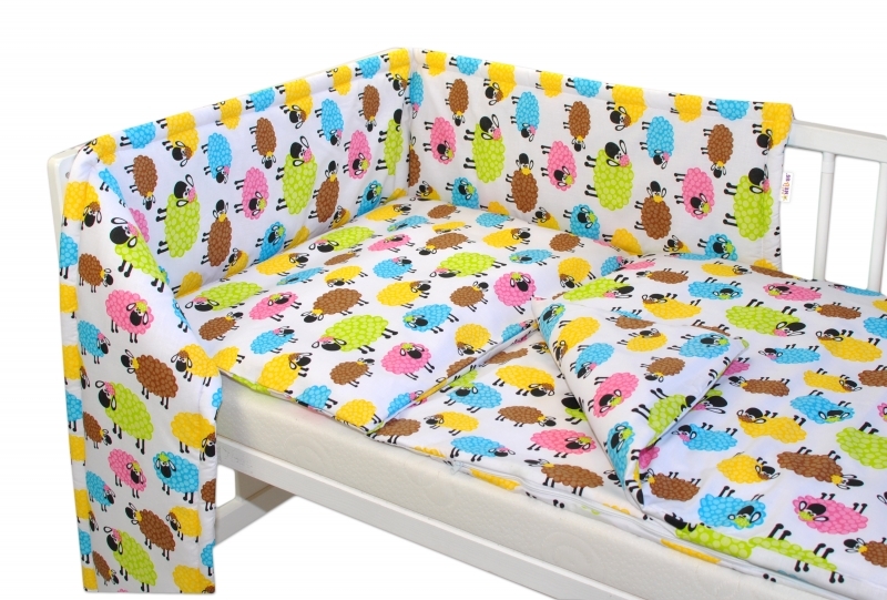 Baby Nellys 3-dílná sada - mantinel s povlečením - Barevné ovečky, vel. 135x100cm