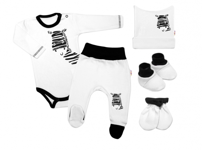 5-ti dílná soupravička do porodnice Zebra - bílá, vel. 68; 68 (3-6m)