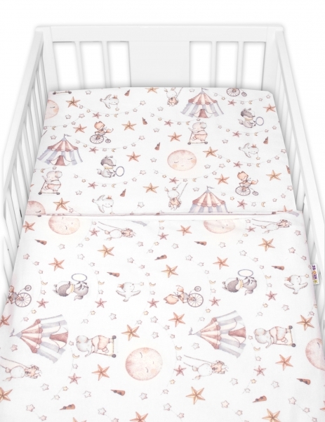 Povlečení do postýlky, 2D sada flanel - Cirkus, Baby Nellys, béžové; 120x90