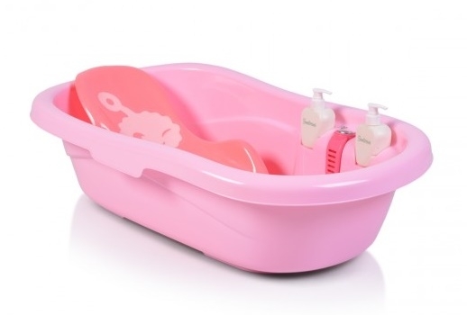 Vhodné pro děti do 24 měsíců.Vanička s teploměrem, lahvičkami se šamponem a sprchovým gelem. Vyjímatelná anatomická vložka, otvor pro odtok vody.Rozměry: 58 cm x 54 cm x 91 cm.Vhodné pro děti do 24 měsíců. przeczytaj całość