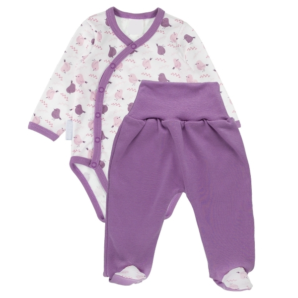 Zavinovací kojenecké body + polodupačky, bavlna, 2D sada, MBaby, Ptáčci - šeřík, vel. 62; 62 (2-3m)