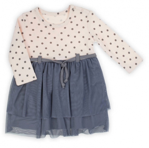 Bavlněné šatičky Puntík s týlem, Nicol, meruňková/šedá ,vel. 74; 74 (6-9m)