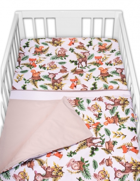 Baby Nellys 2-dílné bavlněné povlečení - Baby Friends, bílé/béžové; 120x90