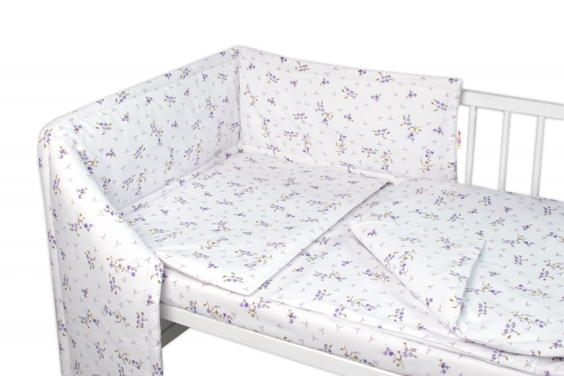 Mantinel s povlečením, 3dílná sada Levandule, Baby Nellys, bílá/fialová, 135x100 cm; 135x100