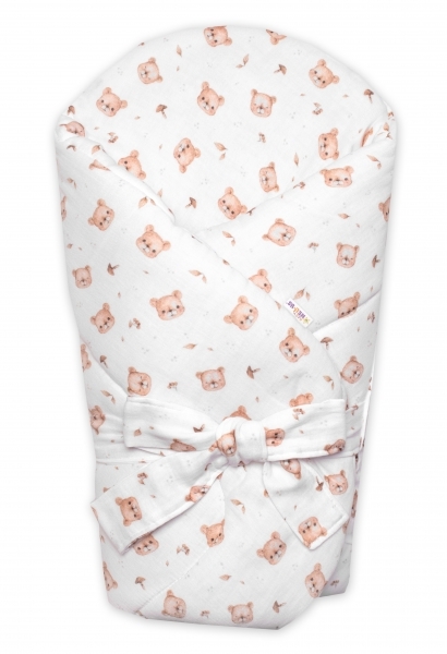 Mušelínová zavinovačka s výztuží na zavazování Teddy Bear, Baby Nellys 75x75cm, bílá