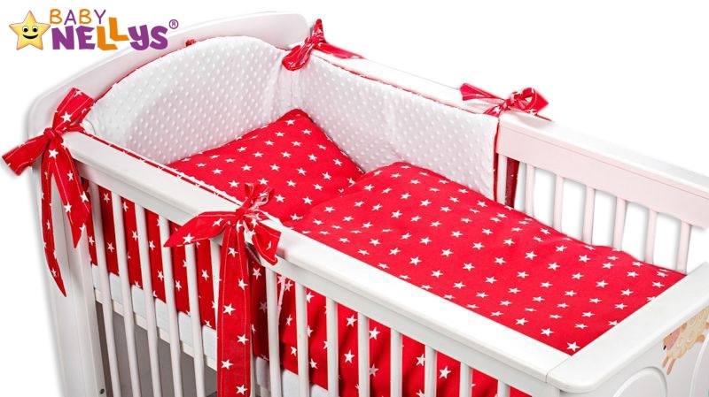 Baby Nellys Mantinel s povlečením MINKY BABY - červené hvězdičky, 135x100 cm; 135x100