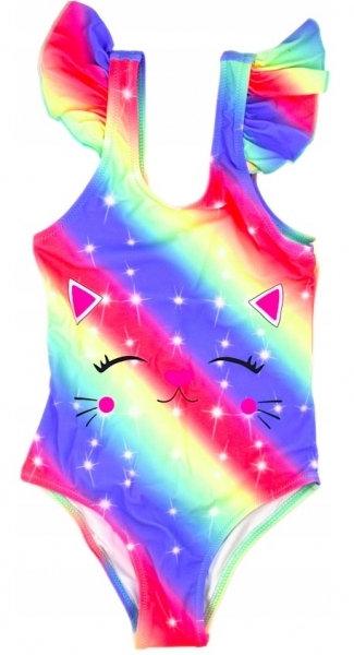 Dívčí jednodílné plavky s volánky - Noviti, Kočička, duhové, vel. 104/110; 104-110 (3-5r)