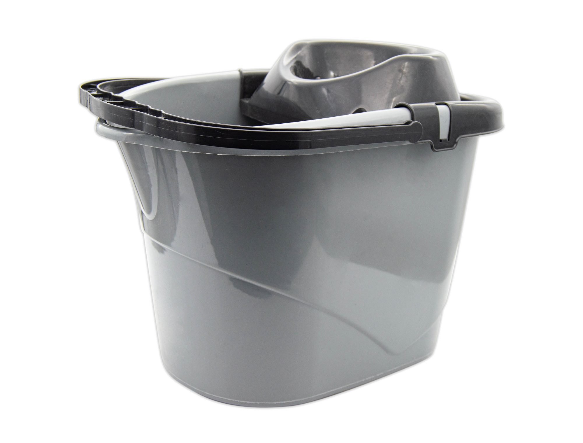 Wysokiej jakości plastikowe wiadro z lejkiem do mopa o pojemności 14 litrów W zestawie kosz do wyciskania ułatwiający wyciskanie mopa. Kolor szary. EAN 5902738218106 przeczytaj całość