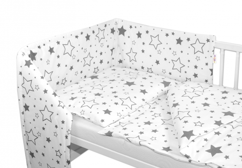 3-dílná sada - mantinel s povlečením - Šedé hvězdy a hvězdičky - bílý, 135x100 cm; 135x100