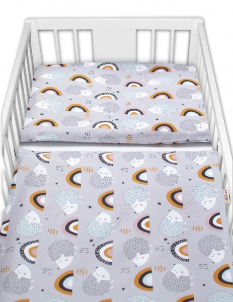 Baby Nellys 2-dílné bavlněné povlečení - Ježek a duha, šedé; 120x90