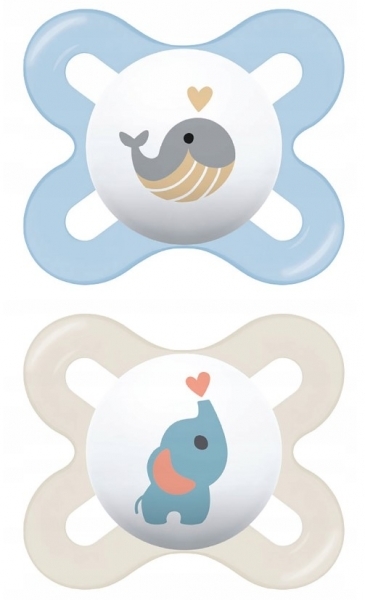 Ortodontický silikonový dudlík MAM, Start Boy 0-2 m, smetanová/modrá, 2 ks