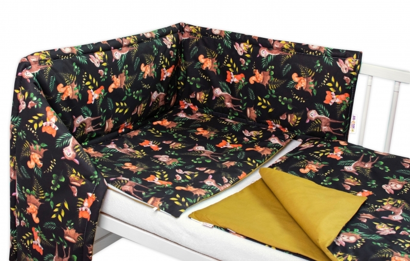 Baby Nellys 3-dílná sada Mantinel s povlečením, Baby Friends, černá/zelená; 120x90