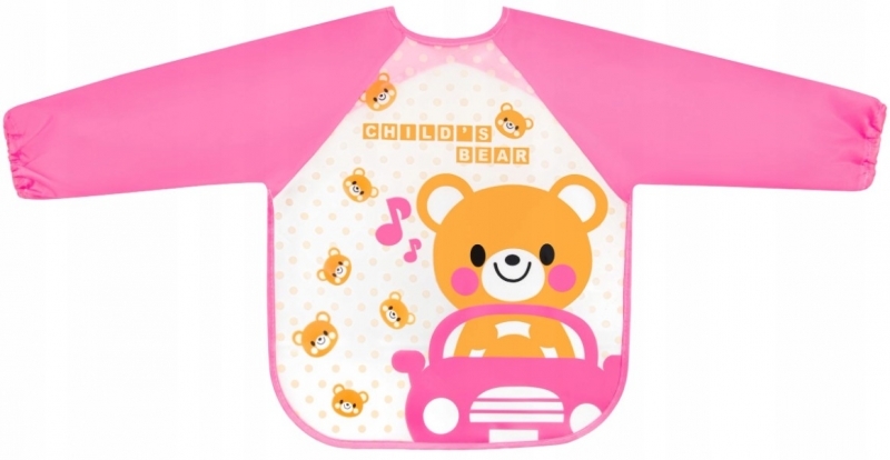 Zástěrka, bryndák nepromakavý s dlouhým rukávem, Méďa, růžová