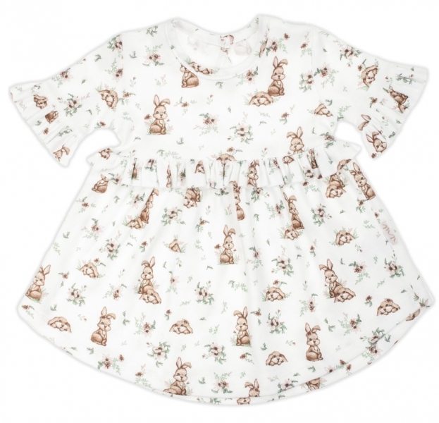 Šatičky krátký rukáv s volánky, Nicol, Bunny - krémové, vel. 86; 86 (12-18m)