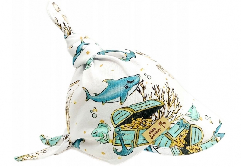 Dětský bavlněný šátek s kšiltem na zavazování, Premium Baby Nellys, poklad; 68-86 (6-18m); 92/98 (18-36m)