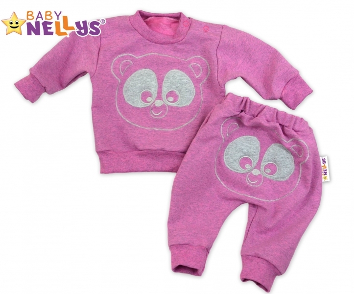 Tepláková souprava Baby Nellys - Medvídek - růžový melír, vel. 86; 86 (12-18m)